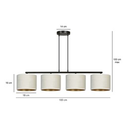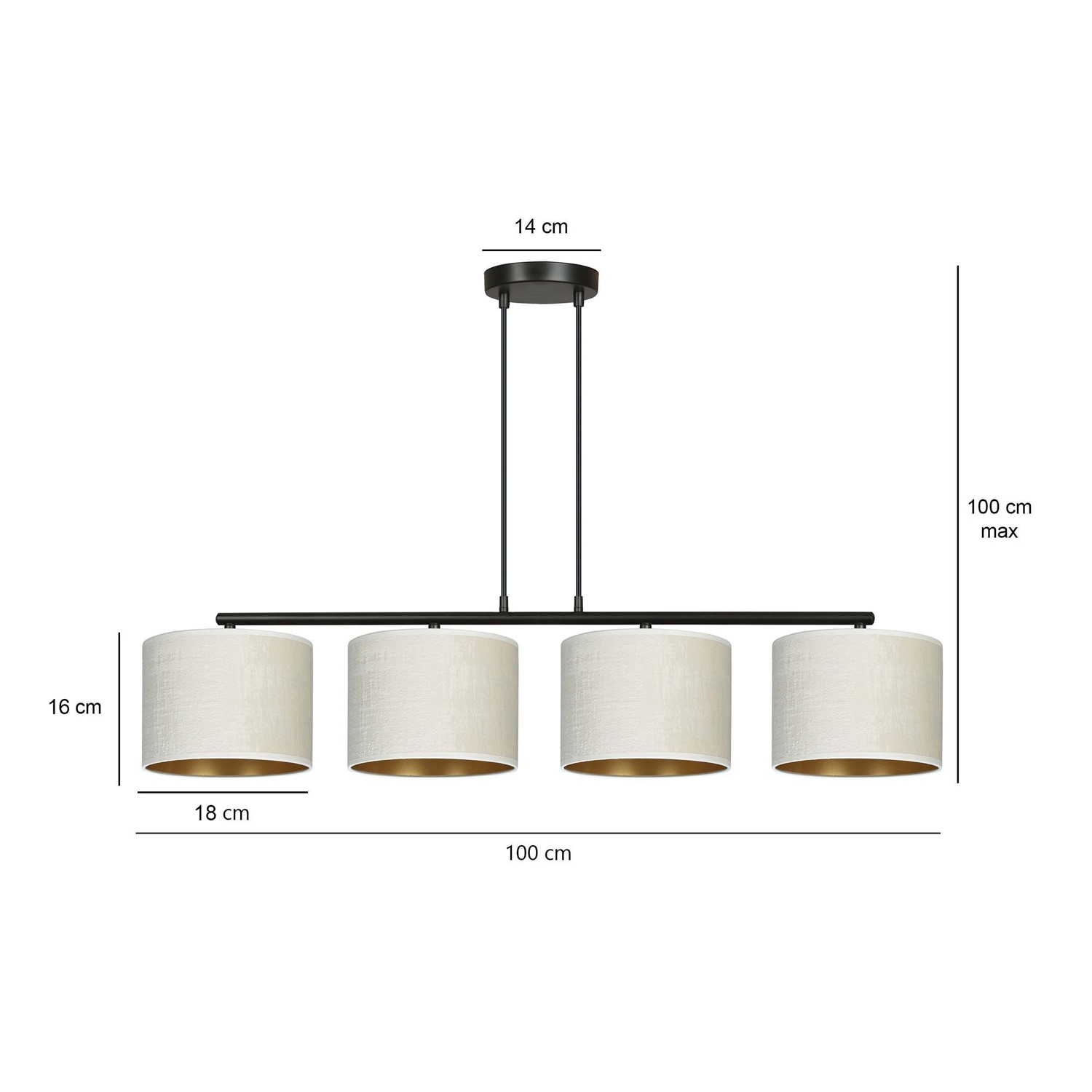 Lampa wisząca HILDE to wyjątkowy dodatek do każdego wnętrza, łączący w sobie nowoczesność i klasyczną elegancję. Ta lampa abażurowa zapewnia nie tylko funkcjonalne oświetlenie, ale również dodaje wyrafinowanego uroku przestrzeni. Regulacja długości przewodów umożliwia dostosowanie lampy do indywidualnych potrzeb i wymiarów pomieszczenia, zapewniając elastyczność w aranżacji. Jej abażury wykonane z trwałego materiału o welurowej fakturze ze złotym środkiem dodają wnętrzu subtelnego luksusu i elegancji. Prosta konstrukcja lampy HILDE oraz jej elegancka kolorystyka sprawiają, że jest to nie tylko źródło światła, ale również wyjątkowy element dekoracyjny, który przyciąga wzrok i podkreśla charakter każdego pomieszczenia.