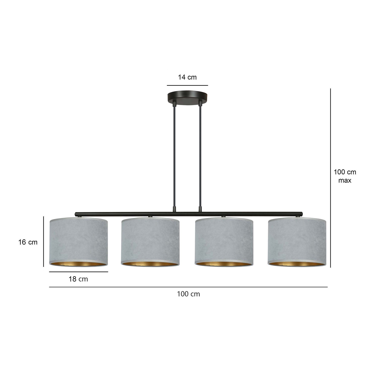 Lampa wisząca HILDE to wyjątkowy dodatek do każdego wnętrza, łączący w sobie nowoczesność i klasyczną elegancję. Ta lampa abażurowa zapewnia nie tylko funkcjonalne oświetlenie, ale również dodaje wyrafinowanego uroku przestrzeni. Regulacja długości przewodów umożliwia dostosowanie lampy do indywidualnych potrzeb i wymiarów pomieszczenia, zapewniając elastyczność w aranżacji. Jej abażury wykonane z trwałego materiału o welurowej fakturze ze złotym środkiem dodają wnętrzu subtelnego luksusu i elegancji. Prosta konstrukcja lampy HILDE oraz jej elegancka kolorystyka sprawiają, że jest to nie tylko źródło światła, ale również wyjątkowy element dekoracyjny, który przyciąga wzrok i podkreśla charakter każdego pomieszczenia.