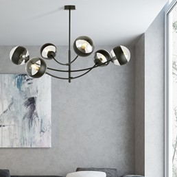 Lampa wisząca HUNTER to znakomity wybór dla tych, którzy poszukują nowoczesnego oświetlenia o wyjątkowym designie. Jej delikatne, szklane klosze nadają wnętrzu elegancji i lekkości, tworząc przyjemną atmosferę. Idealnie sprawdzi się nad stołem lub wyspą kuchenną, dodając pomieszczeniu niepowtarzalnego charakteru. Lampa HUNTER doskonale oświetla duże powierzchnie, jednocześnie komponując się z różnymi aranżacjami wnętrz. Jej minimalistyczna forma nadaje pomieszczeniu nowoczesnego wyglądu, przyciągając wzrok swoją oryginalnością i stylowym designem.