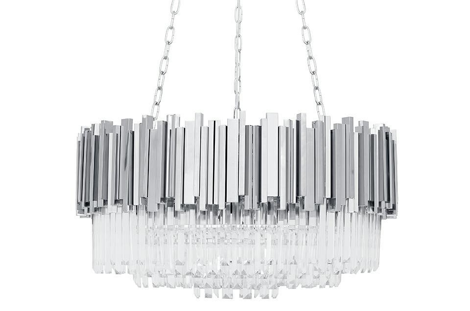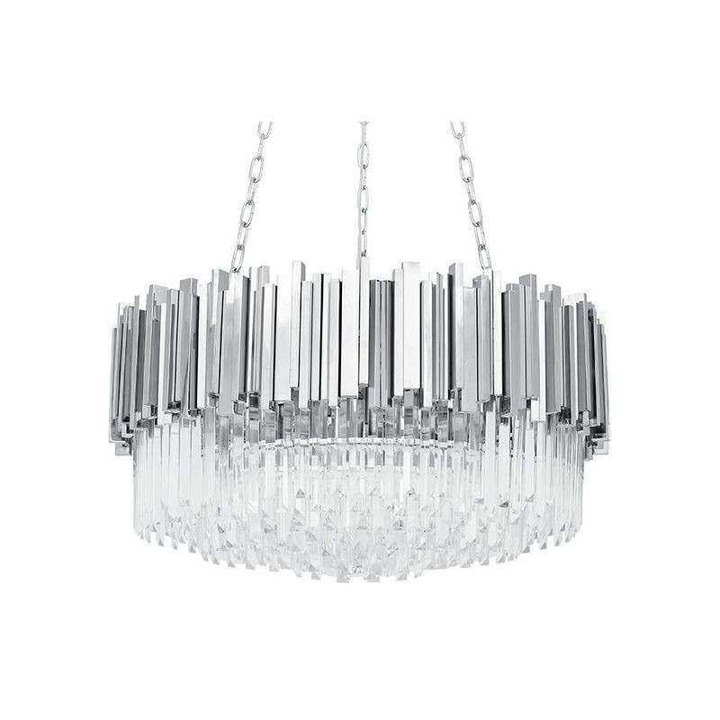Lampa wisząca Imperial Silver 60. Elegancka osłona klosza wykonana została ze stali szczotkowanej w srebrnym kolorze. Wewnątrz zawieszone są kryształki, które skrywają źródło światła. Całość zamocowana jest na podsufitce. Okrągły kształt lampy, połączenie srebra i szklanych kryształków zapewniają optymalne oświetlenie pomieszczenia. Imperial doskonale sprawdzi się we wnętrzach w stylu glamour. Źródło światła: 16 x E14 MAX 40W (brak w zestawie) Maksymalna ilość szt. w opakowaniu: 1 Waga netto 1 szt.: 14 kg Waga opakowania: 16 kg Wymiary opakowania: 82 cm x 82 cm x 30 cm, 35 cm x 35 cm x 17 cm Sposób wysyłki: Paleta Produkt złożony: Tak