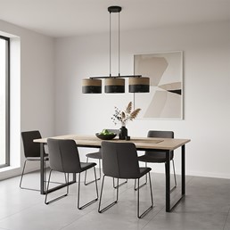 Prezentowana lampa wisząca to elegancki i funkcjonalny element oświetlenia, który doskonale sprawdzi się w różnych wnętrzach. Dzięki swojemu designowi pasuje zarówno do nowoczesnych, jak i klasycznych aranżacji. Może pełnić rolę głównego źródła światła w salonie, jadalni, kuchni czy sypialni. Zawieszona nad stołem lub wyspą kuchenną tworzy przytulną atmosferę i podkreśla charakter przestrzeni. Lampa pełni nie tylko funkcję praktyczną, ale również dekoracyjną. To doskonały wybór dla osób ceniących nowoczesny design i wyraziste akcenty we wnętrzu.
