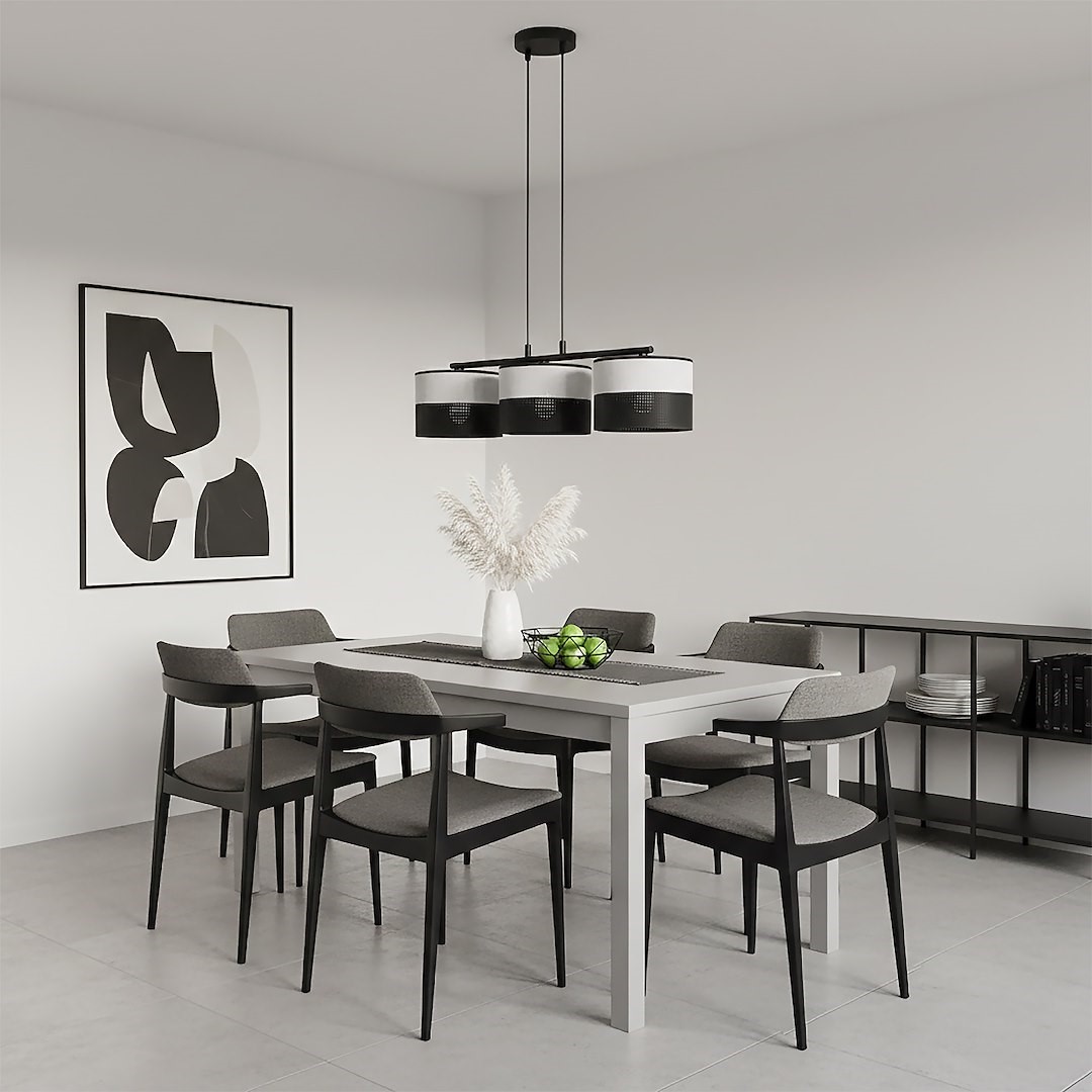 Prezentowana lampa wisząca to elegancki i funkcjonalny element oświetlenia, który doskonale sprawdzi się w różnych wnętrzach. Dzięki swojemu designowi pasuje zarówno do nowoczesnych, jak i klasycznych aranżacji. Może pełnić rolę głównego źródła światła w salonie, jadalni, kuchni czy sypialni. Zawieszona nad stołem lub wyspą kuchenną tworzy przytulną atmosferę i podkreśla charakter przestrzeni. Lampa pełni nie tylko funkcję praktyczną, ale również dekoracyjną. To doskonały wybór dla osób ceniących nowoczesny design i wyraziste akcenty we wnętrzu.