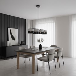 Prezentowana lampa wisząca to elegancki i funkcjonalny element oświetlenia, który doskonale sprawdzi się w różnych wnętrzach. Dzięki swojemu designowi pasuje zarówno do nowoczesnych, jak i klasycznych aranżacji. Może pełnić rolę głównego źródła światła w salonie, jadalni, kuchni czy sypialni. Zawieszona nad stołem lub wyspą kuchenną tworzy przytulną atmosferę i podkreśla charakter przestrzeni. Lampa pełni nie tylko funkcję praktyczną, ale również dekoracyjną. To doskonały wybór dla osób ceniących nowoczesny design i wyraziste akcenty we wnętrzu.
