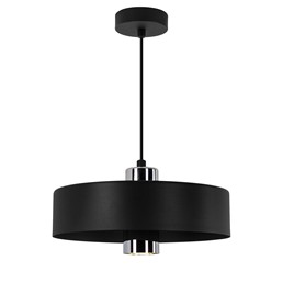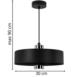 Lampa wisząca Katia to nowoczesny design, który docenia oryginalne kształty. Prosty, minimalistyczny a zarazem niesamowity czarny metalowy klosz w połączeniu z chromowanym elementem nadaje pomieszczeniu niepowtarzalnego i oryginalnego wnętrza. Jej promieniujące światło zapewnia komfortowe oświetlenie wybranego pomieszczenia. Lampa doskonale sprawdzi się w nowoczesnych, minimalistycznych i wysublimowanych wnętrzach, jest idealną propozycją na centralne oświetlenie w salonie, jadalni, kuchni, sypialni, garderobie czy biurze. Mocny metalowy klosz skutecznie ogranicza możliwość uszkodzenia. Produkt wykonany z wysokiej jakości materiałów, dzięki czemu możesz cieszyć się nim przez długie lata. Lampa Katia to świetna propozycja dla osób ceniących minimalistyczny i surowy styl oświetlenia.