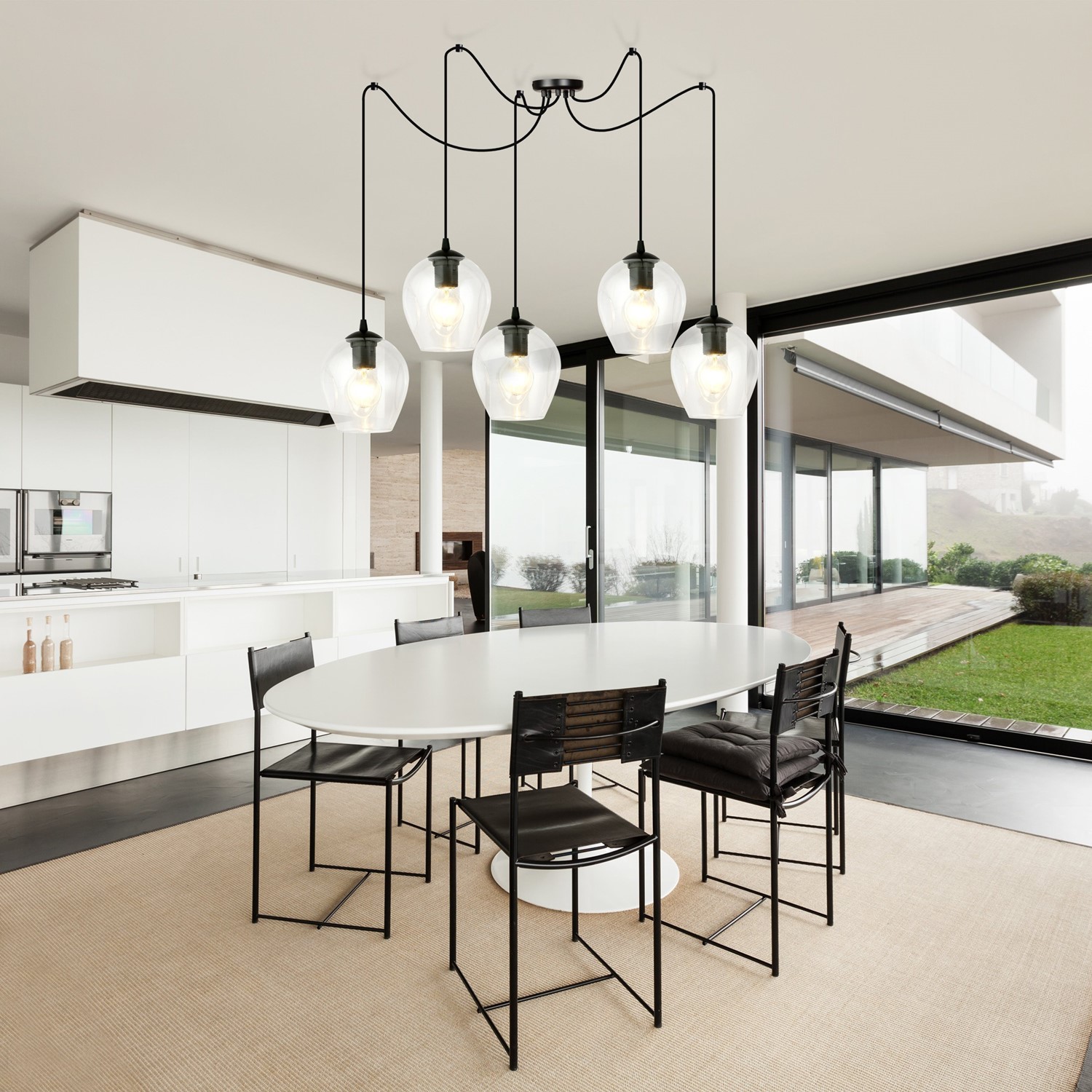 LEVEL to lampa, która dzięki długim przewodom daje wiele możliwości aranżacyjnych. Idealna do wysokich loftowych pomieszczeń, wspaniale podkreśla ich nowoczesny charakter, jednocześnie zapewniając piękne doświetlenie. Szklane klosze dodają lampie lekkości i wdzięku, tworząc subtelny i elegancki efekt świetlny. Jej rozłożysta konstrukcja jest niezwykle oryginalna w swej prostocie, co sprawia, że lampa LEVEL przyciąga uwagę i staje się centralnym elementem dekoracyjnym w każdym wnętrzu. Doskonale sprawdzi się również w bardziej tradycyjnych wnętrzach, wprowadzając do nich nowoczesny akcent. Dzięki możliwości swobodnego rozmieszczenia przewodów i kloszy, lampa ta pozwala na kreatywne i indywidualne podejście do oświetlenia, co czyni ją niezwykle funkcjonalną i wszechstronną.
