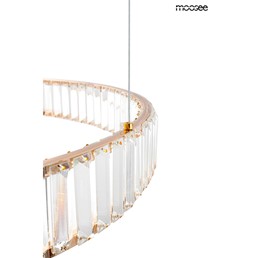 Lampa wisząca LIBERTY 3A to kwintesencja ekskluzywności i elegancji, która z powodzeniem ozdobi wnętrza klasyczne, nowoczesne oraz glamour. Ta wyjątkowa oprawa nie tylko dostarcza światła, ale stanowi również majestatyczną dekorację, której urok przyciąga spojrzenia i dodaje wyjątkowego charakteru każdemu pomieszczeniu. Ozdobne obręcze lampy LIBERTY 3A zostały wykończone złotym kolorem, który delikatnie przebija się przez kryształy, tworząc efekt dekoracyjny pełen blasku i splendoru. Kryształowe szkło, umieszczone po obu stronach obręczy, w niezwykły sposób rozprasza strumień światła, tworząc piękny efekt świetlny, który nadaje pomieszczeniu niepowtarzalnej atmosfery. Trzy okręgi o różnych rozmiarach zawieszone na cienkich linkach z możliwością regulacji wysokości dają możliwość tworzenia kreatywnych konfiguracji, dostosowując lampę do indywidualnych preferencji aranżacyjnych.