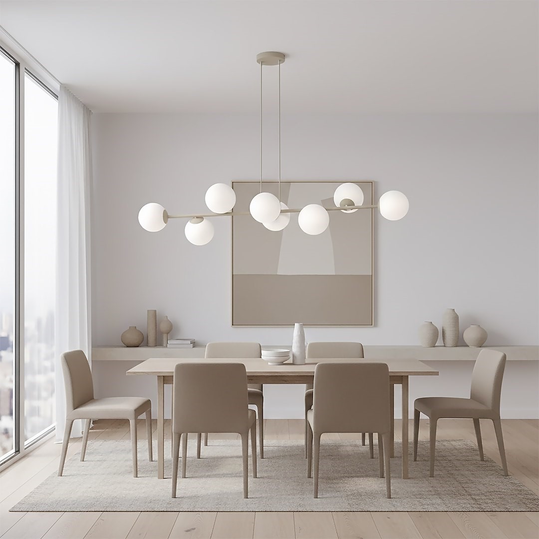Prezentowana lampa wisząca to elegancki i funkcjonalny element oświetlenia, który doskonale sprawdzi się w różnych wnętrzach. Dzięki swojemu designowi pasuje zarówno do nowoczesnych, jak i klasycznych aranżacji. Może pełnić rolę głównego źródła światła w salonie, jadalni, kuchni czy sypialni. Zawieszona nad stołem lub wyspą kuchenną tworzy przytulną atmosferę i podkreśla charakter przestrzeni. Lampa pełni nie tylko funkcję praktyczną, ale również dekoracyjną. To doskonały wybór dla osób ceniących nowoczesny design i wyraziste akcenty we wnętrzu.