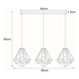 Lampa wisząca z serii MARKO to nowoczesna propozycja w stylu industrialnym, która przyciąga wzrok kloszem w kształcie diamentu. Ażurowa konstrukcja z metalowych prętów nie tylko prezentuje się lekko i elegancko, ale również pozwala na pełne rozproszenie światła, bez tłumienia jego intensywności. Precyzyjne wykonanie i solidna metalowa konstrukcja zapewniają trwałość i odporność na uszkodzenia. Odsłonięta żarówka podkreśla industrialny charakter lampy i pozwala dowolnie dobrać stylowe źródło światła. To praktyczne i dekoracyjne rozwiązanie do nowoczesnych aranżacji.