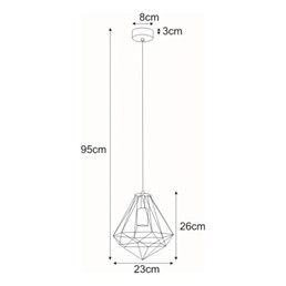 Lampa wisząca z serii MARKO to nowoczesna propozycja w stylu industrialnym, która przyciąga wzrok kloszem w kształcie diamentu. Ażurowa konstrukcja z metalowych prętów nie tylko prezentuje się lekko i elegancko, ale również pozwala na pełne rozproszenie światła, bez tłumienia jego intensywności. Precyzyjne wykonanie i solidna metalowa konstrukcja zapewniają trwałość i odporność na uszkodzenia. Odsłonięta żarówka podkreśla industrialny charakter lampy i pozwala dowolnie dobrać stylowe źródło światła. To praktyczne i dekoracyjne rozwiązanie do nowoczesnych aranżacji.