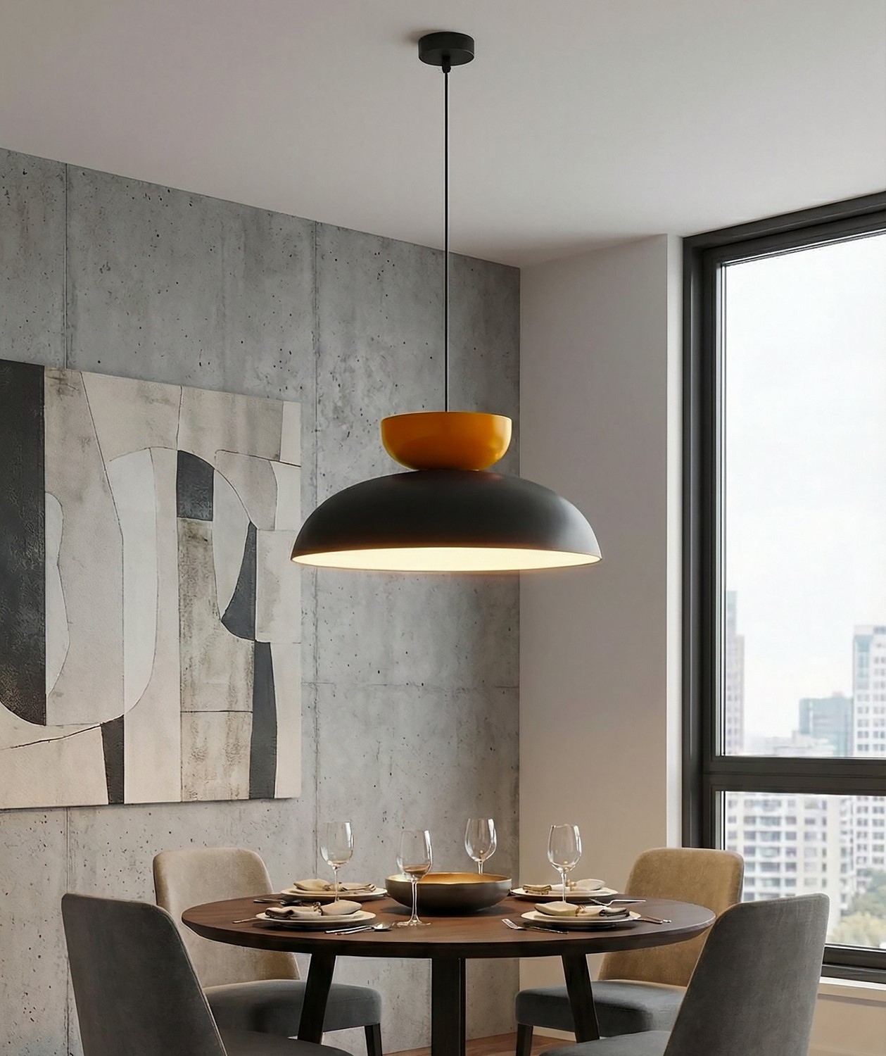 Prezentowana lampa wisząca to elegancki i funkcjonalny element oświetlenia, który doskonale sprawdzi się w różnych wnętrzach. Dzięki swojemu designowi pasuje zarówno do nowoczesnych, jak i klasycznych aranżacji. Może pełnić rolę głównego źródła światła w salonie, jadalni, kuchni czy sypialni. Zawieszona nad stołem lub wyspą kuchenną tworzy przytulną atmosferę i podkreśla charakter przestrzeni. Lampa pełni nie tylko funkcję praktyczną, ale również dekoracyjną. To doskonały wybór dla osób ceniących nowoczesny design i wyraziste akcenty we wnętrzu.