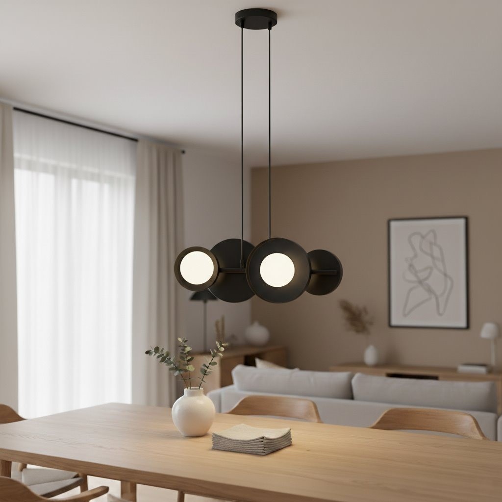Prezentowana lampa wisząca to elegancki i funkcjonalny element oświetlenia, który doskonale sprawdzi się w różnych wnętrzach. Dzięki swojemu designowi pasuje zarówno do nowoczesnych, jak i klasycznych aranżacji. Może pełnić rolę głównego źródła światła w salonie, jadalni, kuchni czy sypialni. Zawieszona nad stołem lub wyspą kuchenną tworzy przytulną atmosferę i podkreśla charakter przestrzeni. Wysokość zawieszenia często można regulować, co pozwala dopasować ją do indywidualnych potrzeb i wysokości pomieszczenia.