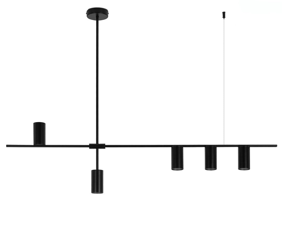 Lampa wisząca MODERNO łączy w sobie prostotę, minimalistyczną formę oraz ponadczasowy design, co czyni ją idealnym wyborem dla osób poszukujących nowoczesnych, a zarazem niezwykle praktycznych rozwiązań oświetleniowych. Pięć punktów świetlnych umieszczonych na podłużnym stelażu pozwala na precyzyjne skierowanie światła w górę i w dół, doskonale doświetlając wybrany punkt pomieszczenia. Całość została wykonana ze stali w klasycznym czarnym kolorze, co podkreśla elegancki charakter lampy, jednocześnie umożliwiając jej dopasowanie do wielu różnorodnych aranżacji wnętrz.