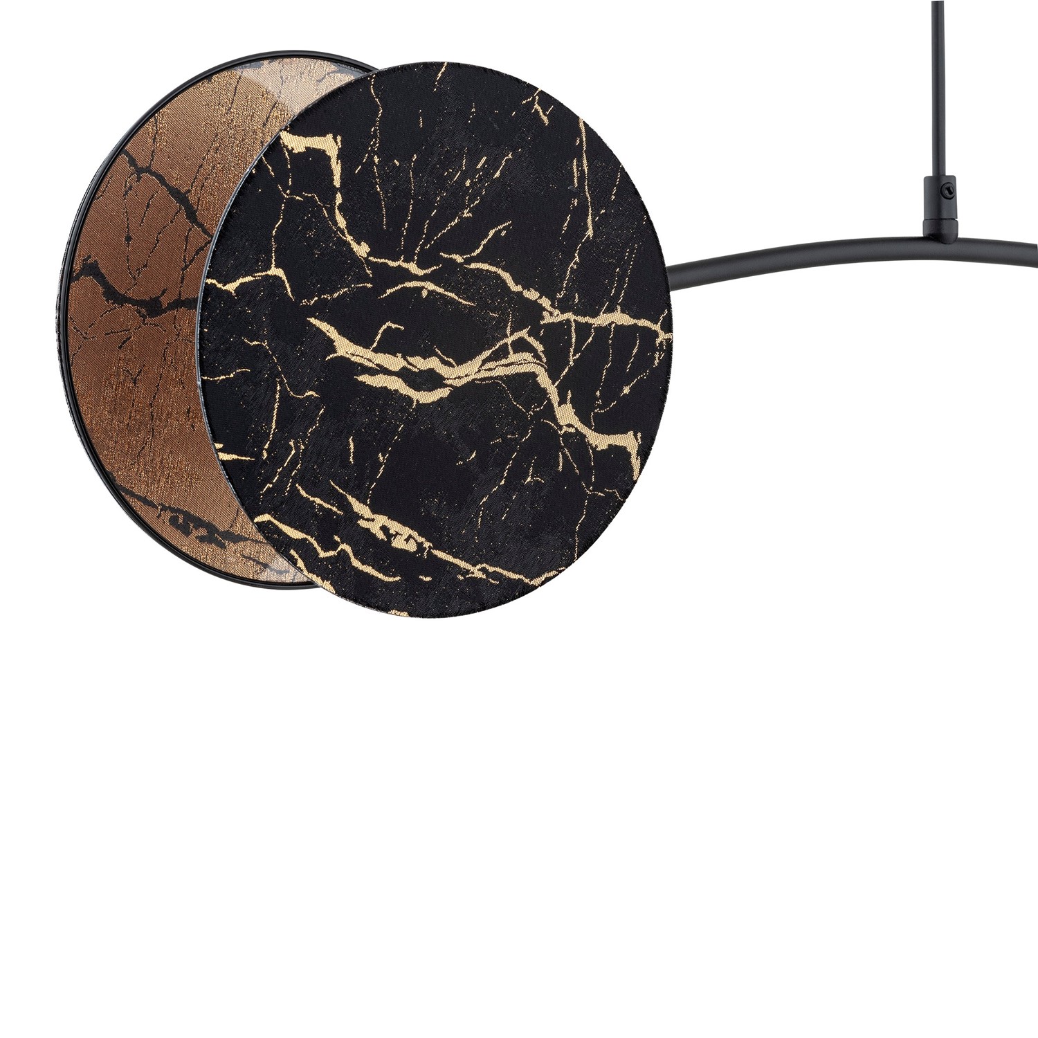 Lampa MOTIF 2 wyróżnia się nietypowym połączeniem metalu, tworzywa i efektu marmuru, co nadaje jej unikalny i atrakcyjny wygląd. Lekko wygięte ramiona dodają lampie subtelnego i eleganckiego charakteru, co sprawia, że stanowi doskonałą ozdobę dla każdego wnętrza. Okrągłe osłony żarówek, harmonijnie wkomponowane w całość, dodają estetyki i wyjątkowego uroku lampie. Długie przewody pozwalają na elastyczne rozmieszczenie lampy, gwarantując równomierne i efektowne oświetlenie, nawet w wysokich pomieszczeniach. Dzięki swojej elegancji i nowoczesności, lampa MOTIF 2 w efekcie marmuru doskonale komponuje się z różnymi stylami wnętrz, dodając im wyrafinowanego charakteru. Jednocześnie praktyczne funkcje oświetlenia pozwalają na efektywne wykorzystanie lampy w codziennym użytkowaniu.