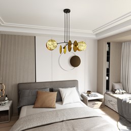 Lampa wisząca MOTIF 4 to wyjątkowy element oświetleniowy, który zachwyca swoim unikalnym designem i harmonijną estetyką. Wykorzystanie wysokiej jakości metalu i tkaniny sprawia, że lampa ta jest nie tylko funkcjonalna, ale również stanowi efektowną dekorację wnętrza. Lekko wygięte ramiona dodają lampie subtelności i elegancji, sprawiając, że stanowi ona doskonałe uzupełnienie zarówno nowoczesnych, jak i klasycznych aranżacji wnętrz. Okrągłe osłony żarówek tworzą harmonijną kompozycję z resztą lampy, dodając jej estetyki i uroku. Długie przewody umożliwiają elastyczne rozmieszczenie lampy w wysokich pomieszczeniach, zapewniając równomierne i efektowne oświetlenie, które sprawi, że wnętrze nabierze niepowtarzalnego charakteru.