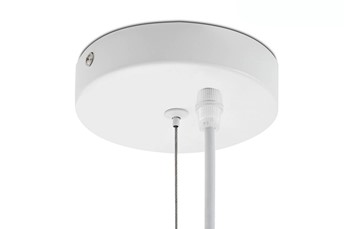 - Zawieszona na białym przewodzie: Lampa doskonale komponuje się z różnorodnymi stylami wnętrz, wprowadzając element lekkości i świeżości.