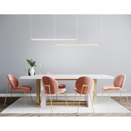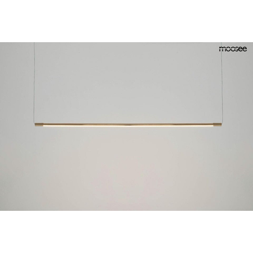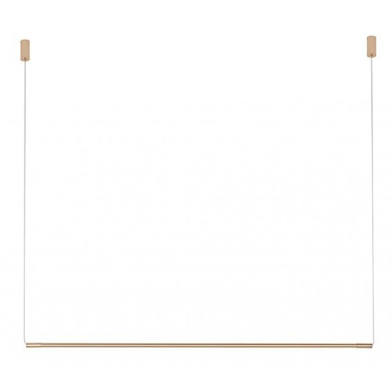 Lampa wisząca OMBRE to wyjątkowe połączenie elegancji, minimalistycznego designu i nowoczesnej funkcjonalności. Całość konstrukcji została wykonana z wysokiej jakości stali w efektownym złotym kolorze, co nadaje lampie nie tylko solidną strukturę, ale także luksusowy wygląd. Centralnym elementem lampy OMBRE jest podłużny, akrylowy klosz, który subtelnie ukrywa za sobą zaawansowane źródło światła LED. Ten nowoczesny materiał nie tylko zapewnia równomierne oświetlenie, ale również nadaje lampie lekkości i nowoczesnego charakteru. Złoty kolor konstrukcji doskonale komponuje się zarówno z nowoczesnymi, jak i industrialnymi wnętrzami. Minimalistyczny kształt lampy OMBRE sprawia, że doskonale odnajduje się w różnych aranżacjach. Jej prosta, a jednocześnie efektowna forma czyni ją doskonałym wyborem zarówno do salonu, jadalni, jak i przestrzeni biurowych czy restauracyjnych.
