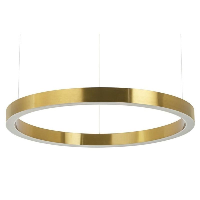 Lampa Ring 80 wykonana została ze stali nierdzewnej w kolorze złotym. Osłona klosza zrobiona z mlecznego tworzywa sztucznego. Okrągły kształt, oraz źródło światła LED zapewniają optymalne oświetlenie pomieszczenia. Lampa sprzedawana wraz ze źródłem światła. Zobacz pozostałe rozmiary lampy Ring. Źródło światła: moduł LED Moc: 50W Wysokość klosza: 5,7 cm Maksymalna ilość szt. w opakowaniu: 1 Waga netto 1 szt.: 8 kg Waga opakowania: 10 kg Wymiary paczki: 88 cm x 88 cm x 14 cm Sposób wysyłki: Paleta Produkt złożony: Tak