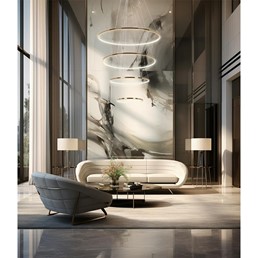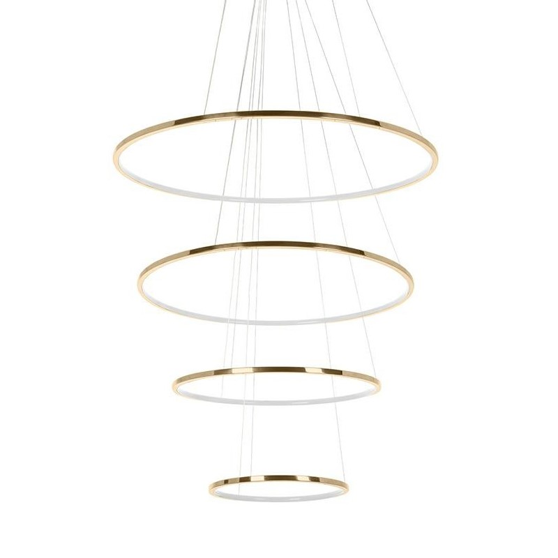 Lampa wisząca RING SLIM M to połączenie ponadczasowej estetyki z minimalistycznym designem, tworząc niezwykle piękną i nowoczesną oprawę oświetleniową. Składająca się z czterech okręgów konstrukcja pozwala na zawieszenie ich kaskadowo lub w dowolnej konfiguracji, co daje swobodę dostosowania lampy do indywidualnych preferencji. Okręgi lampy RING SLIM M zostały wykonane z trwałej stali, nadając im połyskujący złoty kolor, który dodaje wnętrzu elegancji i wyjątkowego blasku. Źródła światła zastosowane w postaci akrylowych elementów nadają całości nowoczesny charakter, tworząc efektowne oświetlenie, które zarówno spełnia funkcję praktyczną, jak i stanowi designerski element dekoracyjny. Lampa RING SLIM M nie tylko oświetli pomieszczenie, ale także nadaje mu indywidualny styl.
