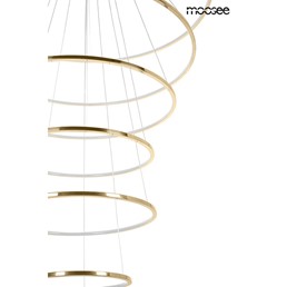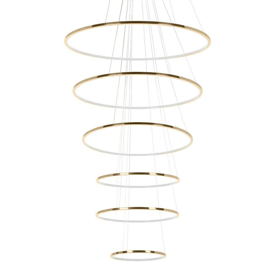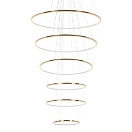 Lampa wisząca RING SLIM XL to połączenie ponadczasowej estetyki z minimalistycznym designem, tworząc niezwykle piękną i nowoczesną oprawę oświetleniową. Składająca się z sześciu okręgów konstrukcja pozwala na zawieszenie ich kaskadowo lub w dowolnej konfiguracji, co daje swobodę dostosowania lampy do indywidualnych preferencji. Okręgi lampy RING SLIM XL zostały wykonane z trwałej stali, nadając im połyskujący złoty kolor, który dodaje wnętrzu elegancji i wyjątkowego blasku. Źródła światła zastosowane w postaci akrylowych elementów nadają całości nowoczesny charakter, tworząc efektowne oświetlenie, które zarówno spełnia funkcję praktyczną, jak i stanowi designerski element dekoracyjny. Lampa RING SLIM XL nie tylko oświetli pomieszczenie, ale także nadaje mu indywidualny styl.
