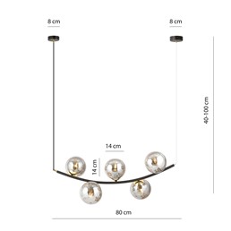 Lampa Wisząca RITZ 5 to propozycja wprowadzająca prostotę minimalistycznego designu do każdego wnętrza. Wykonana ze stali w kolorze czarnym, doskonale współgra ze szklanym kloszem. Jej kształt w formie półkola z nieregularnie rozmieszczonymi kloszami nadaje wnętrzu wyjątkowego charakteru, podkreślając jednocześnie jego nowoczesny i wytworny styl. Jest to idealny wybór dla osób poszukujących sposobu na ożywienie swoich wnętrz, tworząc oświetlenie, które nie tylko spełnia funkcjonalne potrzeby, ale także wyróżnia się estetyką.