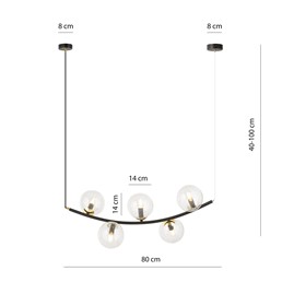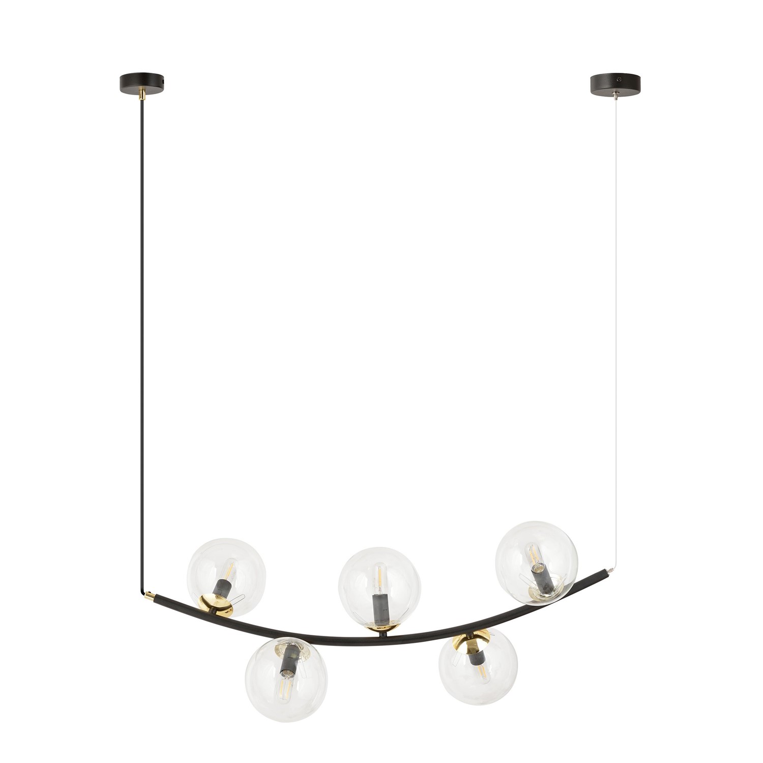 Lampa Wisząca RITZ 5 to propozycja wprowadzająca prostotę minimalistycznego designu do każdego wnętrza. Wykonana ze stali w kolorze czarnym, doskonale współgra ze szklanym kloszem. Jej kształt w formie półkola z nieregularnie rozmieszczonymi kloszami nadaje wnętrzu wyjątkowego charakteru, podkreślając jednocześnie jego nowoczesny i wytworny styl. Jest to idealny wybór dla osób poszukujących sposobu na ożywienie swoich wnętrz, tworząc oświetlenie, które nie tylko spełnia funkcjonalne potrzeby, ale także wyróżnia się estetyką.