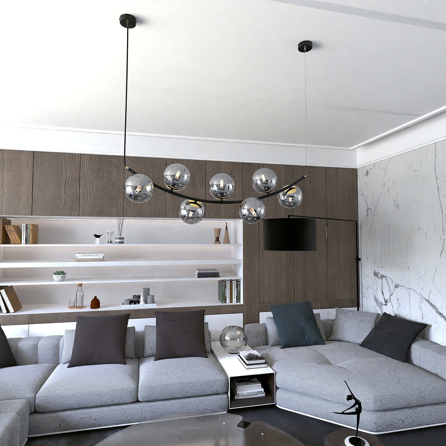 Lampa Wisząca RITZ 7 to propozycja wprowadzająca prostotę minimalistycznego designu do każdego wnętrza. Wykonana ze stali w kolorze czarnym, doskonale współgra ze szklanym kloszem. Jej kształt w formie półkola z nieregularnie rozmieszczonymi kloszami nadaje wnętrzu wyjątkowego charakteru, podkreślając jednocześnie jego nowoczesny i wytworny styl. Jest to idealny wybór dla osób poszukujących sposobu na ożywienie swoich wnętrz, tworząc oświetlenie, które nie tylko spełnia funkcjonalne potrzeby, ale także wyróżnia się estetyką.