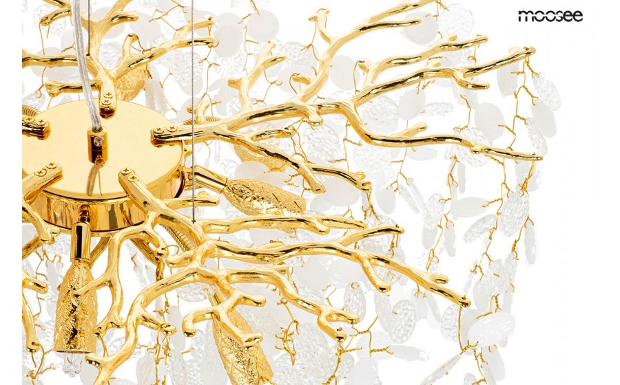 Lampa wisząca RIVIERA 60 to niezwykle ekskluzywna oprawa, która bez wątpienia stanie się głównym elementem dekoracyjnym Twojego wnętrza. To arcydzieło designu łączy w sobie precyzję wykonania, nowoczesność i niecodzienną estetykę. RIVIERA prezentuje się wyjątkowo dzięki zastosowaniu akrylowych kloszy, które zachwycają perfekcyjnym wykonaniem. Zestawienie tych kloszy na stalowej obręczy w złotym kolorze, imitującej gałęzie drzewa, nadaje lampie niepowtarzalny charakter. Ta harmonijna kompozycja sprawia, że lampa stanowi nie tylko źródło światła, ale także wyjątkową ozdobę przestrzeni. Wnętrze lampy RIVIERA kryje aż 8 źródeł światła, które zapewniają intensywne i jednocześnie przyjemne oświetlenie. Dzięki rozmieszczeniu kloszy, światło jest równomiernie rozproszone, tworząc niesamowity efekt wizualny. Dodatkowo, możliwość regulacji kąta nachylenia światła pozwala dostosować oświetlenie do indywidualnych preferencji, co sprawia, że lampa RIVIERA to nie tylko element dekoracyjny, ale także funkcjonalne źródło światła. Lampa RIVIERA doskonale wpisuje się w ekskluzywne przestrzenie, takie jak salon urody czy restauracja, dodając im wyjątkowego blasku i charakteru.