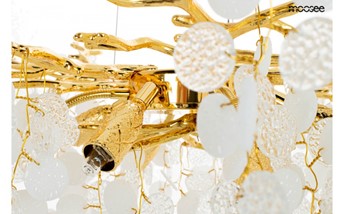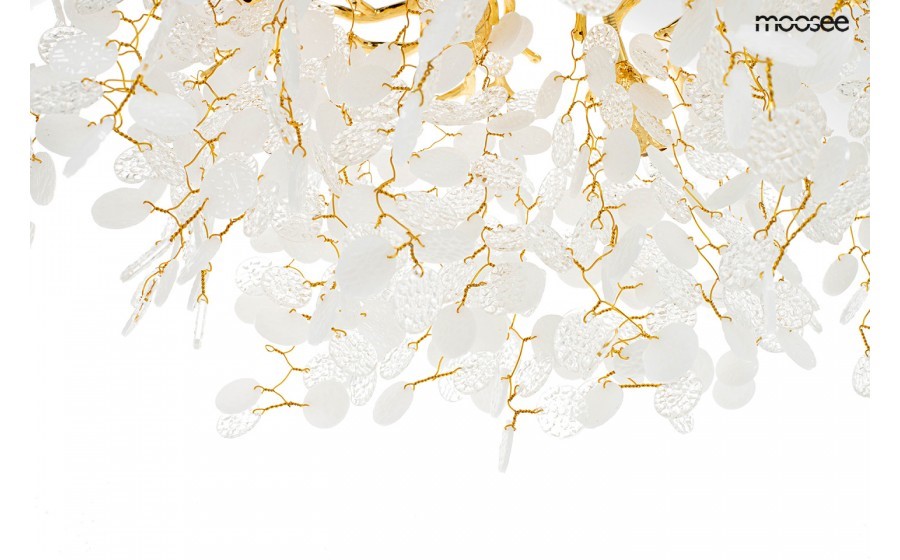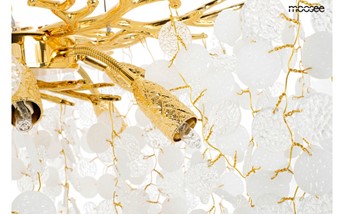 Lampa wisząca RIVIERA 80 to niezwykle ekskluzywna oprawa, która bez wątpienia stanie się głównym elementem dekoracyjnym Twojego wnętrza. To arcydzieło designu łączy w sobie precyzję wykonania, nowoczesność i niecodzienną estetykę. RIVIERA prezentuje się wyjątkowo dzięki zastosowaniu akrylowych kloszy, które zachwycają perfekcyjnym wykonaniem. Zestawienie tych kloszy na stalowej obręczy w złotym kolorze, imitującej gałęzie drzewa, nadaje lampie niepowtarzalny charakter. Ta harmonijna kompozycja sprawia, że lampa stanowi nie tylko źródło światła, ale także wyjątkową ozdobę przestrzeni. Wnętrze lampy RIVIERA kryje aż 10 źródeł światła, które zapewniają intensywne i jednocześnie przyjemne oświetlenie. Dzięki rozmieszczeniu kloszy, światło jest równomiernie rozproszone, tworząc niesamowity efekt wizualny. Dodatkowo, możliwość regulacji kąta nachylenia światła pozwala dostosować oświetlenie do indywidualnych preferencji, co sprawia, że lampa RIVIERA to nie tylko element dekoracyjny, ale także funkcjonalne źródło światła. Lampa RIVIERA doskonale wpisuje się w ekskluzywne przestrzenie, takie jak salon urody czy restauracja, dodając im wyjątkowego blasku i charakteru.
