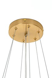 - Elegancki stelaż: Całość umieszczono na eleganckim stelażu wykończonym w złotym kolorze, który dopełnia luksusowego charakteru lampy. Złote wykończenie dodaje blasku i elegancji, podkreślając prestiżowy wygląd oświetlenia.