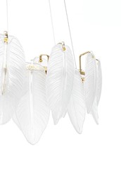 - Subtelne klosze: Mleczne szklane klosze przypominające liście dodają subtelnego uroku, tworząc delikatne i rozproszone światło, które wprowadza do wnętrza przytulną atmosferę.