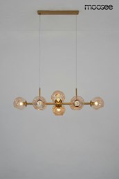 Lampa wisząca MOOSEE ROMEO GOLD złoto/bursztyn. Połączenie koloru i ciepłego światła nadaje lampie stylowego romansu. Klosz z bursztynowego szkła owija się wokół stalowej ramy, tworząc spójną i przemyślaną całość. Nowoczesna, ale dyskretna atmosfera „ociepli” niemal każdą aranżację.