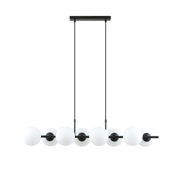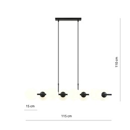 Lampa wisząca RORY to wyjątkowy element oświetlenia, który nie tylko doskonale doświetli wnętrze, ale również stanowi stylową dekorację, dodającą mu niepowtarzalnego charakteru. Zaprojektowana z myślą o nowoczesnych trendach, ta lampa jest równie atrakcyjna w klasycznych aranżacjach, co czyni ją wszechstronnym dodatkiem do różnych stylów wnętrzarskich. Jej najnowocześniejszy design wyróżnia się lekkimi, szklanymi kloszami, które nadają oświetleniu subtelności i elegancji. Klosze te nie tylko doskonale rozpraszają światło, ale także tworzą przyjemną atmosferę, dzięki której wnętrze nabiera ciepła i wyjątkowego uroku. Jej nowoczesna forma doskonale współgra z prostymi liniami i czystymi przestrzeniami, dodając wnętrzu nowoczesności i stylu.