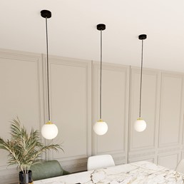 Lampa wisząca ROYAL 1 wyróżnia się minimalistycznym stylem, który doskonale odzwierciedla nowoczesne trendy. Jej prosta konstrukcja z okrągłą podsufitką czyni ją niezwykle uniwersalną, pasującą do różnorodnych wnętrz, od kuchni po salon i jadalnię. Delikatny akcent błyszczącego złota dodaje lampie elegancji i lekkości, podkreślając jej minimalistyczny charakter. Ten subtelny element przyciąga uwagę, nie przytłaczając przy tym całej aranżacji. Lampa idealnie sprawdzi się jako uniwersalne rozwiązanie, nadające pomieszczeniom subtelny, nowoczesny akcent.