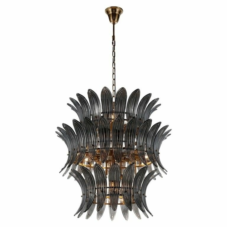 Nietuzinkowy kształt kloszy wykonano z czarnego szkła.