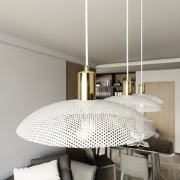 Lampa wisząca SPIRIT 3 w kolorze białym wyróżnia się nie tylko funkcjonalnością, ale także niezwykłym stylem. Doskonale komponuje się z loftowymi pomieszczeniami, nadając im nowoczesny charakter. Jej metalowe klosze o interesującej fakturze nie tylko dostarczają dużo światła, ale również stanowią atrakcyjny element dekoracyjny, który przyciąga uwagę i dodaje wnętrzu wyjątkowego uroku. Dodatek złota nadaje nutki elegancji, podkreślając jej wyjątkowy design. Lampa wisząca SPIRIT 3 jest idealnym rozwiązaniem dla osób poszukujących oświetlenia, które nie tylko skutecznie oświetli pomieszczenie, ale także nada mu unikatowego stylu i charakteru. Dzięki swojej uniwersalności lampa sprawdzi się doskonale w różnych aranżacjach wnętrz, dodając im nowoczesnego i eleganckiego wyrazu.