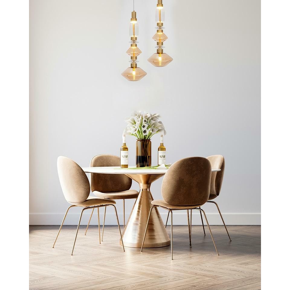 Lampa wisząca VASO to wyraz elegancji i nowoczesności, stworzony poprzez zręczne połączenie stali i szkła. Jej unikalny design oparty na geometrycznych kloszach nie tylko stanowi źródło oświetlenia, ale także pełni funkcję wyrafinowanej dekoracji, nadając Twojemu wnętrzu niepowtarzalny charakter. Geometryczne klosze lampy VASO nie tylko dostarczają pięknego światła, ale także stanowią estetyczne akcenty, które przyciągają wzrok i nadają przestrzeni wyjątkowego charakteru. Ich niecodzienna forma sprawia, że lampa VASO staje się nie tylko źródłem światła, ale również efektowną ozdobą, której urok doskonale podkreśli atmosferę salonu, sypialni czy innego pomieszczenia.