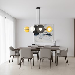 Prezentowana lampa wisząca to elegancki i funkcjonalny element oświetlenia, który doskonale sprawdzi się w różnych wnętrzach. Dzięki swojemu designowi pasuje zarówno do nowoczesnych, jak i klasycznych aranżacji. Może pełnić rolę głównego źródła światła w salonie, jadalni, kuchni czy sypialni. Zawieszona nad stołem lub wyspą kuchenną tworzy przytulną atmosferę i podkreśla charakter przestrzeni. Wysokość zawieszenia często można regulować, co pozwala dopasować ją do indywidualnych potrzeb i wysokości pomieszczenia.