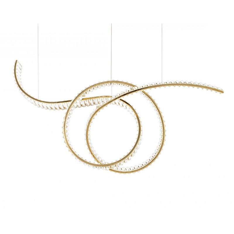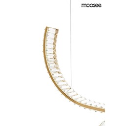Lampa wisząca WAVE to wyrazista kompozycja, która nie tylko doskonale oświetla wnętrze, lecz również stanowi imponującą dekorację. Ta efektowna oprawa łączy w sobie nowoczesny design z luksusowym wykończeniem, tworząc unikalny element, który podkreśla elegancję Twojego wnętrza. Ciekawy i nowoczesny kształt lampy został osiągnięty dzięki precyzyjnemu połączeniu stali i kryształów. Złote wykończenie ze stali nadaje lampie nie tylko nowoczesny, ale również wytworny charakter. Kryształy, zręcznie umieszczone w konstrukcji, działają jak subtelnym akcentem, który przykuwa uwagę i nadaje lampie wyjątkowego uroku. Światło przenika przez kryształy, tworząc elegancki i luksusowy efekt, który rozprasza się w otaczającym pomieszczeniu. Lampa WAVE nie tylko spełnia rolę źródła światła, ale również pełni funkcję artystycznej dekoracji, podkreślając styl i wyrafinowanie przestrzeni.