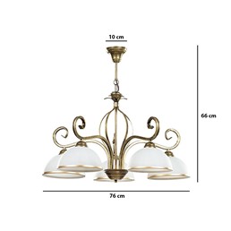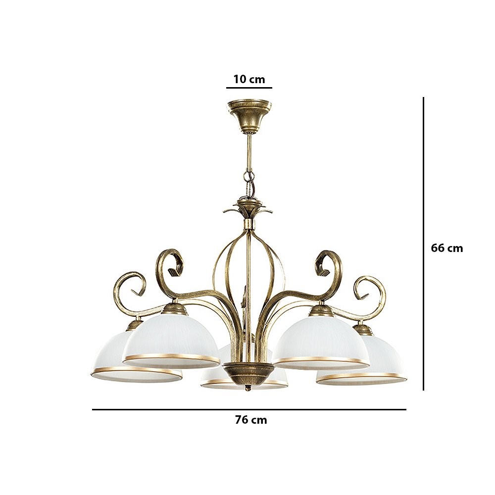 Lampa Wisząca WIVARA 5 to wyjątkowy dodatek do każdego wnętrza, który zachwyca swoim designerskim wyglądem i funkcjonalnością. Wyprodukowana w Polsce z dbałością o detale, lampa doskonale współgra z różnorodnymi aranżacjami, dodając im nuty klasy i elegancji. Jej złoty kolor oraz konstrukcja z dominacją szkła i metalu nadają wnętrzom wytworności i nowoczesnego wyglądu. Otwarte klosze z mlecznego szkła zapewniają przyjemne, rozproszone światło, które doskonale nadaje się do salonów, sypialni czy biur.