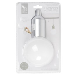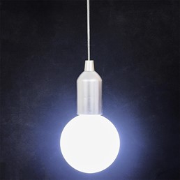 Lampa Wisząca Żarówka Srebrna L to elegancki dodatek do wnętrza, który wprowadza nowoczesny i industrialny design. Lampka, przypominająca swoim kształtem żarówkę, idealnie sprawdzi się do minimalistycznych pomieszczeń. Wystarczy przyczepić ją za pomocą sznurka do jakiegokolwiek elementu. Lampka Wisząca Żarówka Srebrna L jest zasilana przez baterie, więc nie trzeba się martwić o brak prądu. Długość sznurka 110 cm.