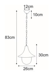 Prezentowana lampa wisząca zewnętrzna to eleganckie i funkcjonalne rozwiązanie oświetleniowe, idealne do zastosowania na zadaszonych tarasach, werandach, altanach czy przy wejściach do budynków. Dzięki solidnemu wykonaniu z materiałów odpornych na działanie warunków atmosferycznych zapewnia trwałość oraz bezpieczne użytkowanie przez cały rok. Jej zawieszana konstrukcja pozwala na równomierne oświetlenie przestrzeni z góry, tworząc przytulną i klimatyczną atmosferę po zmroku.