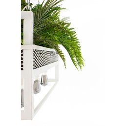 Semira to nie tylko lampa, to prawdziwe dzieło sztuki, które przykuwa uwagę nawet najbardziej wymagającego miłośnika designu. Ta niezwykła kreacja nie tylko ociepli chłodne, industrialne wnętrze, ale również nadaje mu wyjątkowego charakteru, czyniąc każde pomieszczenie miejscem pełnym harmonii i wyrafinowanego piękna. Każda lampa Semira to unikatowy produkt, układany ręcznie w pracowni florystycznej z niezwykłą starannością i pasją. Dzięki temu każda z lamp staje się jedyną w swoim rodzaju, a precyzyjnie zestawione fragmenty tworzą harmonijną całość. Proces tworzenia zaczyna się od ucięcia i dopasowania każdego elementu, począwszy od gąbki, poprzez roślinne gałązki, aż po liście. W rezultacie uzyskujemy lampę, gdzie rośliny wyglądają niczym żywe, a ich naturalna kolorystyka dodaje wnętrzu świeżości i przyjemności z natury. Solidna rama lampy przypominająca kwietnik została wykonana z niezwykłą precyzją ze stali pomalowanej białym lakierem, co nadaje konstrukcji lekkości i elegancji. Połączenie surowości metalu i zieloności roślinności tworzy niezwykle efektowną całość, która jest zarówno nowoczesna, jak i pełna naturalnego uroku.