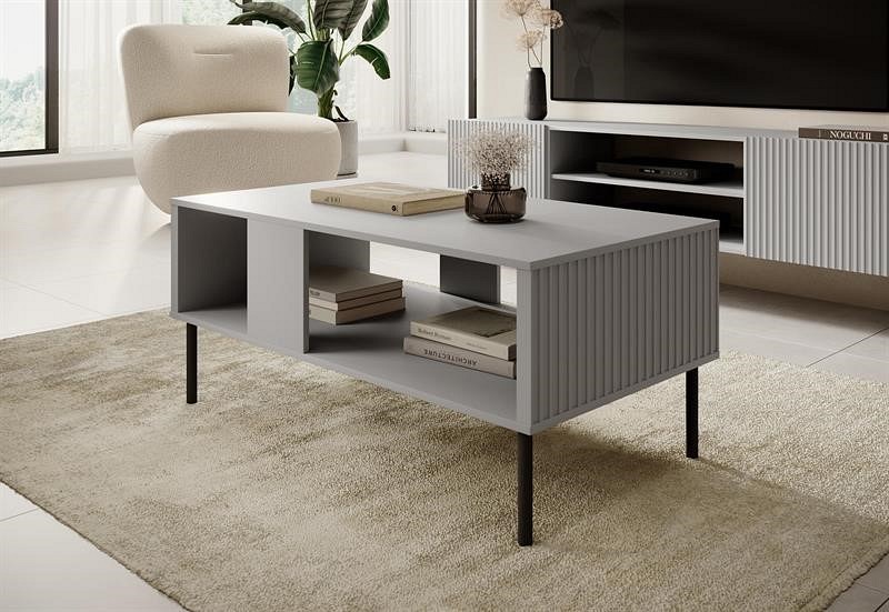 Stolik kawowy ASENSIO LAW-1 to doskonały wybór dla osób ceniących sobie nowoczesność, prostotę i elegancję. Stół wykonany jest z wysokiej jakości płyty meblowej laminowanej oraz płyty MDF laminowanej, która charakteryzuje się dużą wytrzymałością. Stół z jasnoszarą ramą z tektury falistej prezentuje się bardzo elegancko i modnie. Całość wsparta na czarnych polipropylenowych nogach, które nadają nowoczesnej i atrakcyjnej kompozycji. Dolna półka pod stołem zwiększa funkcjonalność i praktyczność. Stolik kawowy ASENSIO LAW-1 to świetny dodatek do loftowego salonu.