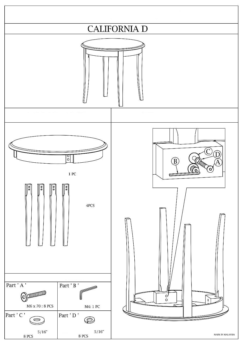 CALIFORNIA D to doskonała propozycja dla ciepłych, drewnianych mieszkań. Podstawą ławy są cztery delikatnie wygięte nogi. Okrągły blat ławy jest wykonany z trwałej płyty MDF pokrytej fornirem z kunsztownym podziałem okleiny na środku.