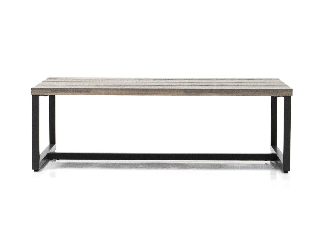 Oryginalna drewniana ławka w stylu loft, wykonana z wysokiej jakości czesanego egzotycznego drewna akacjowego. Proste metalowe szpilki w kolorze grafitowym przetarte ciepłymi tonami tworzą kształt litery U, który łączy się w dolnej części środkowej. Blat z matowego drewna tworzy niejednolitą fakturę.