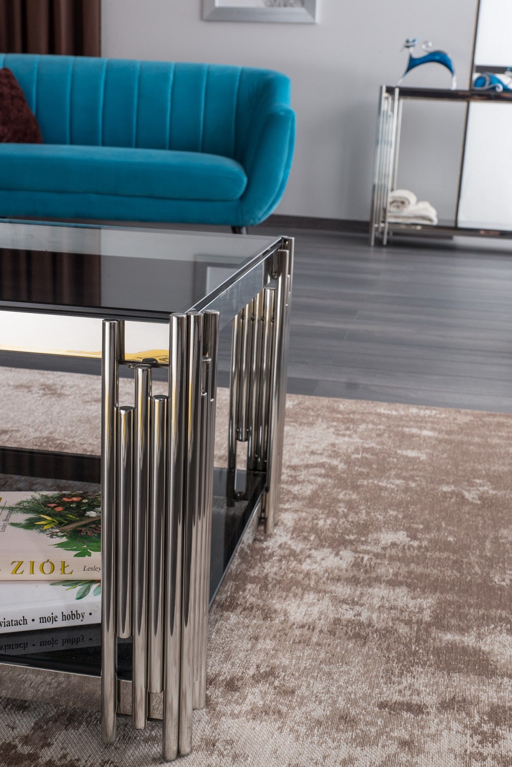 Ława SILVER A 80x80 Srebrny/Szkło DymioneŁawa SILVER A 80x80 Srebrny/Szkło Dymione