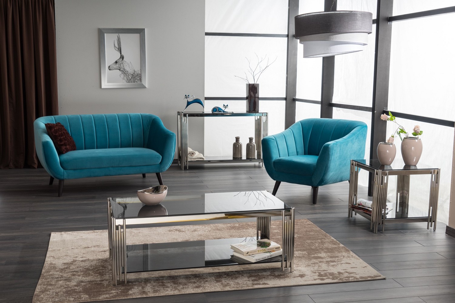 Ława SILVER A 80x80 Srebrny/Szkło DymioneŁawa SILVER B 50x50 Srebrny/Szkło DymioneŁawa SILVER A 80x80 Srebrny/Orzech