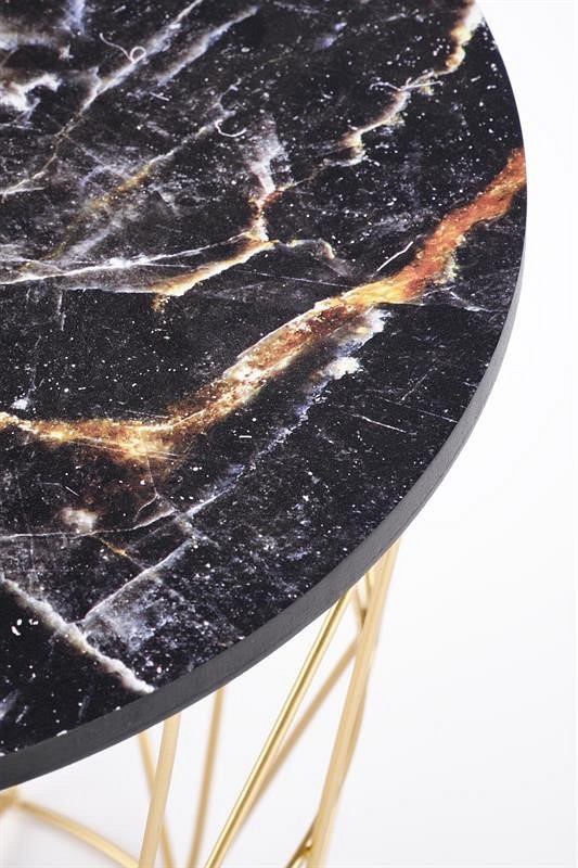 Ława loftowa HARISSA G wykonana jest z płyty MDF pokrytej okleiną w kolorze czarny marmur. Spód stolika kawowego wykonany jest ze stali malowanej proszkowo na kolor złoty. Malowane proszkowo elementy są trwałe, nierdzewne i odporne na mechaniczne uszkodzenia powłoki. Blat MDF jest wytrzymały, odporny na działanie wyższych temperatur, niewrażliwy na zarysowania i tarcie. Pokazana ławka posiada zdejmowany pokrowiec, dzięki czemu możemy jej również używać jako wielofunkcyjnego kosza do przechowywania, dzięki czemu zachowamy porządek i będziemy mieć wszystkie rzeczy pod ręką w jednym miejscu.