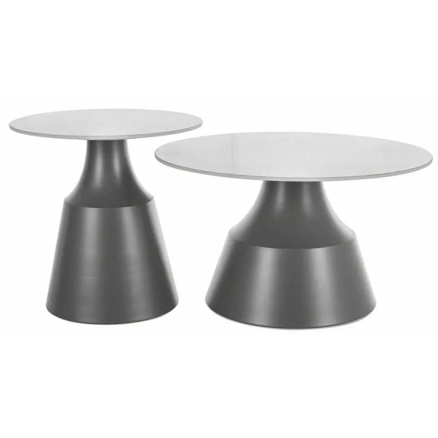 Ława Itaka to elegancki zestaw, który doskonale uzupełni każde wnętrze. W skład zestawu wchodzi większa ława o średnicy 70 cm i wysokości 40 cm oraz mniejsza ława o średnicy 50 cm i wysokości 50 cm. Blat wykonany z ceramiki w kolorze białym dodaje lekkości i świeżości, a metalowy stelaż w kolorze szarym zapewnia trwałość i stabilność. To idealne rozwiązanie do salonu, które łączy funkcjonalność z nowoczesnym stylem.