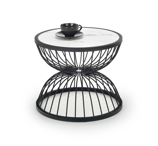 Ława SALMA Fi80 Biały Efekt Marmuru/Złoty